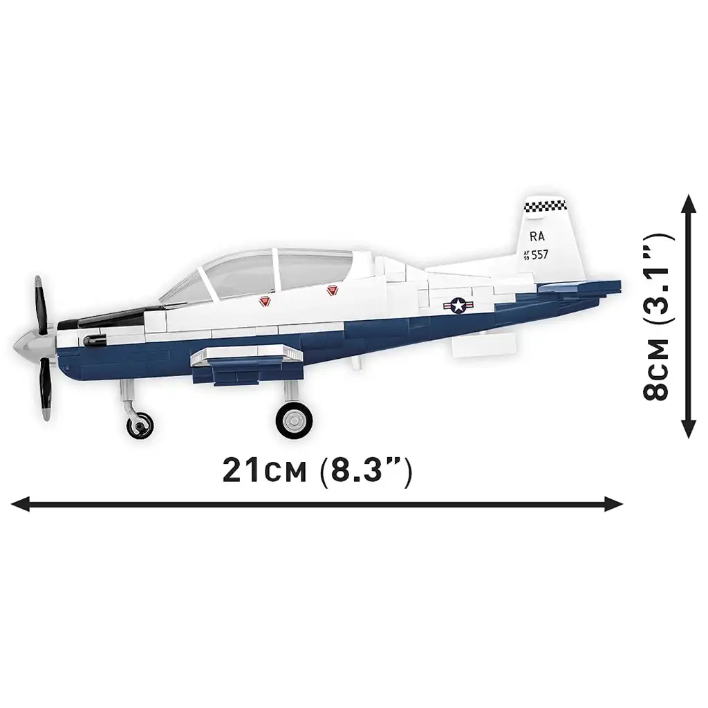 Táto stavebnica COBI pripomína model celosvetovo známeho cvičného lietadla Beechcraft T-6 Texan II, ktoré využíva letectvo viacerých krajín na výcvik pilotov. Model je vyhotovený v špeciálnej modro-bielej farebnej kombinácii, ktorá ešte viac zvýrazňuje elegantné tvary lietadla. Model je zostaviteľný v mierke 1:48 a obsahuje celkovo 197 vysokokvalitných stavebných dielikov. Proporcie modelu verne kopírujú originál: dĺžka 21 cm, rozpätie krídel 21,5 cm a výška 8 cm.
