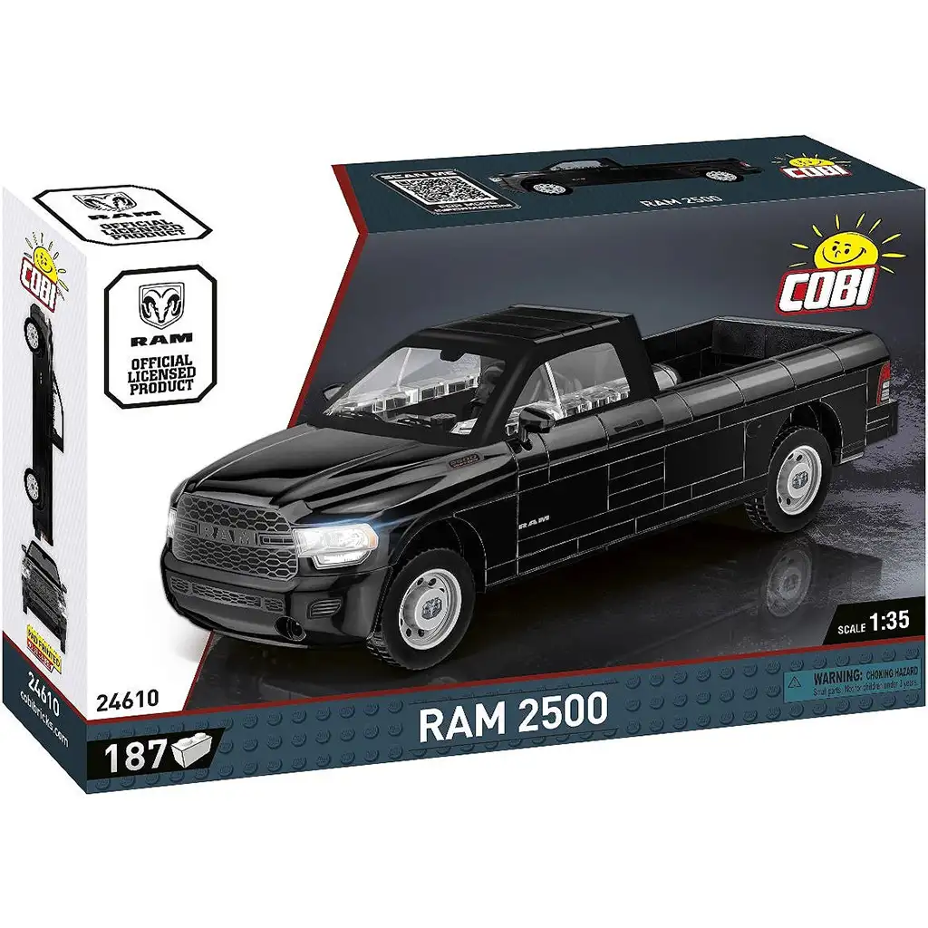 Stavebnica COBI Dodge RAM 2500 prináša skutočnú silu a robustnosť amerických pickupov v podobe stavebných kociek. Model v mierke 1:35 sa skladá zo 187 dielov a svojimi detailmi verne zachytáva charakteristické črty originálneho vozidla. Masívna karoséria, typická predná maska a priestranná kabína sú všetky prítomné na modeli. Kolieska s gumovým povrchom, ktoré sa otáčajú, zabezpečujú realistický pohyb a továrensky potlačené dekorácie sú odolné a elegantné, takže nie je potrebné používať nálepky.