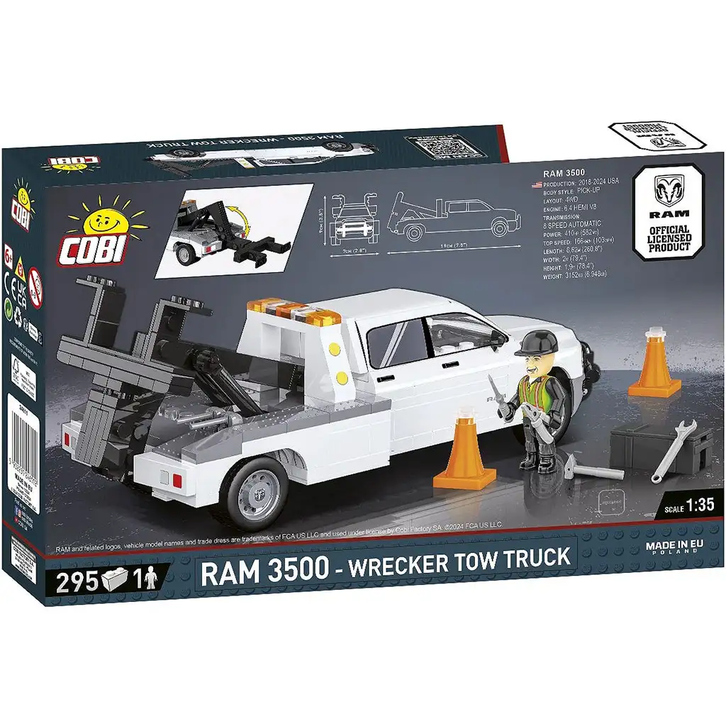 Stavebnica COBI Dodge RAM 3500 odťahové vozidlo oživuje legendárny americký pickup v špeciálnej verzii navrhnutej na záchranu. Model v mierke 1:35 sa skladá z 295 dielov a detailne zachytáva charakteristický vzhľad skutočného vozidla. Masívna karoséria, nastaviteľné odťahovacie rameno a potlačené dekorácie robia model jedinečným. Gumené, otočné kolesá zaručujú realistický pohyb a odolná konštrukcia poskytuje dlhodobú zábavu. Potlačené ozdoby sú trvácne, takže nie sú potrebné žiadne nálepky.