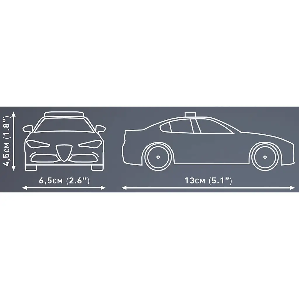Stavebnica COBI Alfa Romeo Giulia Quadrifoglio policajné auto je špeciálnou verziou ikonického športového sedanu, ktorý sa objavuje aj vo flotile talianskej polície. Model verne pripomína štýl Alfa Romeo „Quadrifoglio“ – spája symboliku štvorlístka s oficiálnymi policajnými dizajnovými prvkami, čím získava jedinečný charakter pri zachovaní vernej podoby originálu.