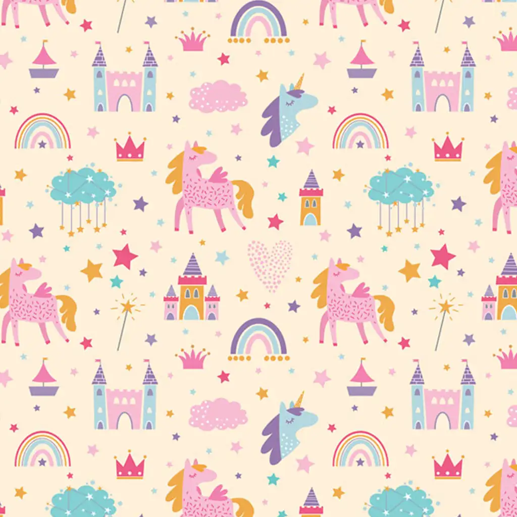 Očarujte malé dievčatá ešte pred rozbalením darčeka s týmto rozprávkovým baliacim papierom s motívom jednorožcov o veľkosti 100x70 cm! Roztomilý dizajn ovládajú ružové, fialové a pastelové odtiene, pričom celý povrch zdobia usmiate jednorožce, princezné zámky, dúhy, čarovné prútiky, obláčiky, korunky a hviezdičky – akoby sa na papieri zobudila skutočná rozprávka.