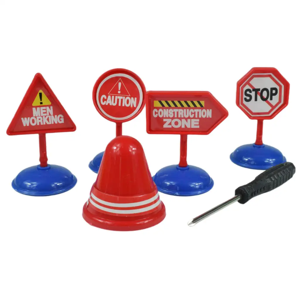 Súprava tiež obsahuje päť rôznych dopravných značiek, ktoré pomáhajú hru urobiť realistickou. S týmito značkami môže tvoje dieťa vytvoriť simuláciu svojho vlastného odvozu odpadu alebo vzrušujúcu stavbu vo svojom hernom kráľovstve.