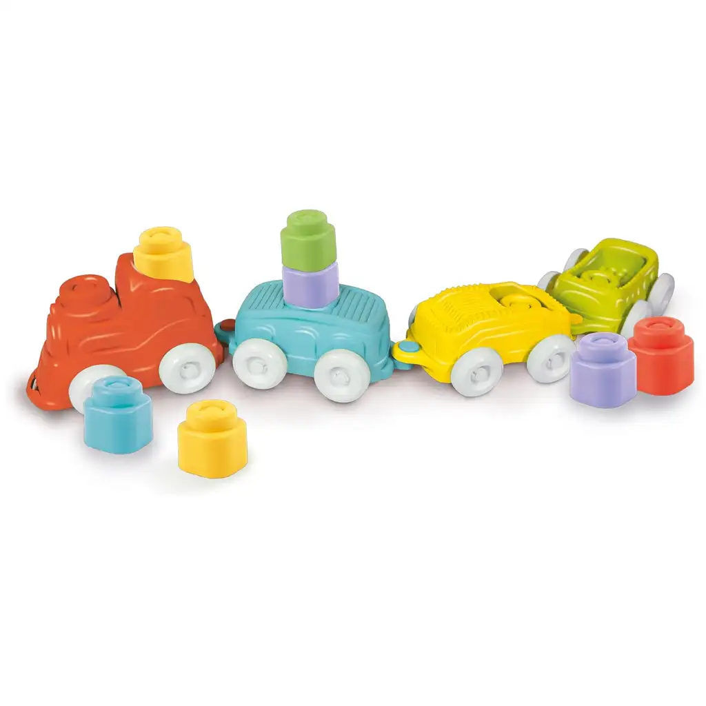 Clemmy senzorický vlak na rozvoj zručností je určený pre najmenších, aby počas hry rozvíjal ich zmysly a motorické zručnosti. Tento mäkký, žiarivo farebný hračkársky vlak prichádza s 8 mäkkými stavebnými kockami, ktoré sa dajú ľahko stavať na seba alebo umiestniť do vagónov, čím poskytujú skvelú zábavu pre bábätká. Vlak je dlhý 70 cm, čo umožňuje deťom ho tlačiť, ťahať alebo jednoducho objavovať rôzne farebné prvky.