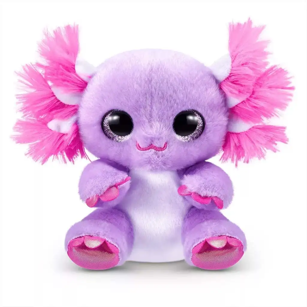 Coco Cones Originals Pebbles axolotl plyšová hračka je naozaj výnimočný a neodolateľný malý plyšový kamarát, ktorý si vás získa už na prvý pohľad. Fialový, usmievavý axolotl s obrovskými, trblietavými očami a charakteristickými, hebkými ružovými „žiabrami“ je skutočnou raritou vo svete plyšákov. Táto milá hračka nie je len rozkošná, ale aj na dotyk mäkká, vyrobená z prémiových materiálov, takže je ideálnym spoločníkom na objímanie, upokojenie a zaspávanie.