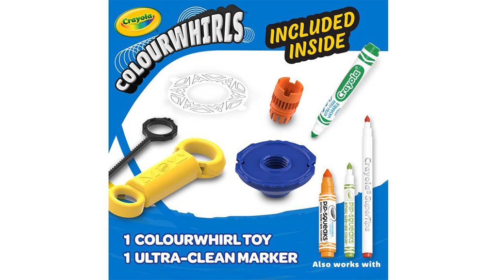 Deti môžu vytvárať farebné špirálové umelecké diela pomocou Crayola Colourwhirls. Táto "ručná súprava" kombinuje klasickú hru s točidlom so značkovými umývateľnými fixkami, čím ponúka nový spôsob hry a tvorby. Po vložení fixky do točidla môžu deti pomocou rukoväte a ťahacieho šnúry otáčať točidlá a vytvárať špirálové umelecké diela. Colourwhirls je dostupný jednotlivo aj v trojdielnej súprave a je kompatibilný s inými produktmi Crayola, vrátane hrubých a tenkých fixiek, pip-squeaks a super tips.