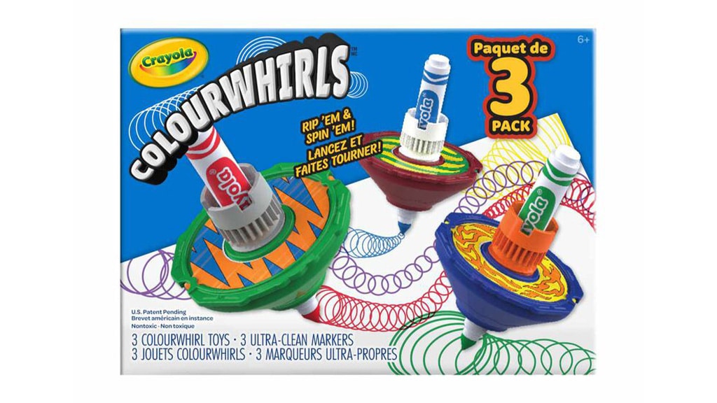 Colourwhirls posúva zábavu na novú úroveň v typických umeleckých a remeselných súpravách. Predtým, než sa zábava začne, deti si môžu prispôsobiť svoje točidlá s opakovane použiteľnými vrchnými diskami, ktoré sú skvelé pre umelecké vyjadrenie. Hoci trojbalenie obsahuje tri ultra-čisté fixky, deti môžu použiť takmer akékoľvek fixky Crayola, ak pridajú adaptér skrytý v rukoväti. Tieto súpravy sú tiež vynikajúce na hranie, pretože deti môžu používať vrchné disky na klasickú točivú zábavu aj bez fixiek. S 12 farbami točidiel Colourwhirls môžu malí umelci vytvárať špirálové umenie s akoukoľvek kombináciou vrchných diskov a diskov.