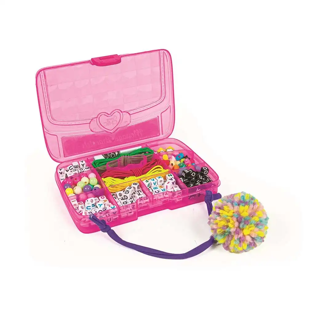 Uvoľnite kreativitu svojho dieťaťa s touto kreatívnou sadou na tvorbu odkazov, ktorá je dokonalou voľbou pre všetkých malých výrobcov šperkov a remeselníkov. Sada prichádza v praktickej, priehľadnej, výrazne ružovej krabičke rozdelenej na priehradky, aby mal každý korálik a doplnok svoje miesto. Sada obsahuje rôznofarebné a rôzne tvary písmenkových korálok, farebné korálky, ozdoby v tvare srdiečka a farebné šnúrky, aby sa dali vyrobiť tie najrozmanitejšie náramky, náhrdelníky a iné doplnky.