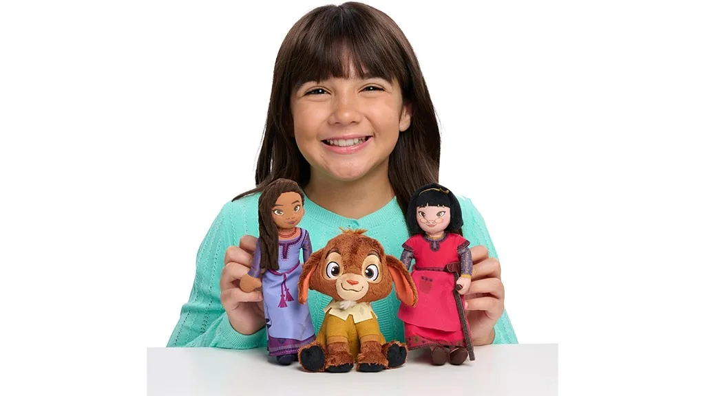 Kolekcia obsahuje aj množstvo plyšových hračiek v plnej veľkosti, s ktorými sa môžu deti interaktívne zapojiť a hrať podľa svojej fantázie. Plyšová hračka "Walk ‘N Talk Valentino" chodí, hovorí a mečí ako skutočná koza. Deti len stlačia Valentino bok, aby aktivovali jeho chôdzu, mečanie a rôzne vety z filmu! Pre pokojnejšie objatie je tu plyšový "Hug & Wish Star", ktorý jemne svieti, keď stlačíte jeho ruku! Asha, Dahlia a Valentina sú tiež dostupné v podobe hovoriacich plyšov. Tieto plyšové hračky hovoria rôzne vety z filmu, keď stlačíte ich brucho.