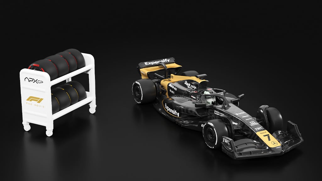 Toto pretekárske auto vo filme šoféruje postava Brada Pitta (Sonny Hayes) a nesie čierno-zlaté farby fiktívneho tímu Apex Grand Prix (APXGP), ako aj štartové číslo 7 tejto postavy. Kovový model auta v mierke 1:64 umožňuje, aby sa čaro filmu presťahovalo do obývačky. Toto detailne prepracované auto je ideálnou voľbou pre zberateľov a fanúšikov, ktorí chcú zažiť vzrušenie filmu a svet motoršportu vo svojom vlastnom domove.Tri sady pneumatík Pirelli a jeden stojan na pneumatiky sú tiež súčasťou balenia. Tieto doplnky umožňujú používať vozidlo za rôznych podmienok a pneumatiky skladovať usporiadane a bezpečne. Pneumatiky Pirelli predstavujú vynikajúcu kvalitu, takže je zaručená spoľahlivá priľnavosť a výkon.