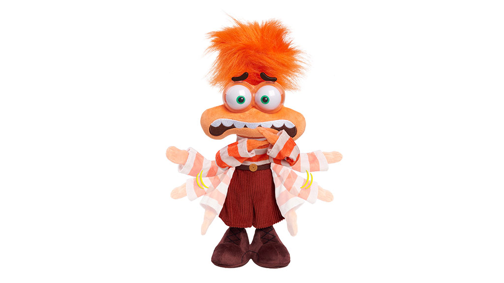 Keď sa deti hrajú s týmto plyšovým hračkom Úzkosť, všetky ich vlastné úzkosti zmiznú! Keď deti krútia Úzkosťine vlasy, ona sa trasie a hovorí vety z filmu V hlave 2, pričom jej oči sa trasú. Čím viac krútia jej vlasy, tým viac sa trasie a hovorí.Deti teraz môžu objať svoje emócie s plyšovou kolekciou Disney V hlave 2. Táto séria obsahuje deväť plyšových hračiek: Radosť, Smútok, Hnev, Znechutenie, Strach, Závisť, Nuda, Zmätok a Úzkosť.