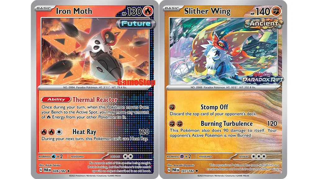 Scarlet & Violet - Paradox Rift je už dostupný v booster balíčkoch, Elite Trainer Boxoch a mnohých ďalších. Pri nákupe Pokémon TCG v hodnote 15 dolárov alebo viac môžu malí tréneri získať špeciálnu promo kartu Iron Moth od GameStop v Spojených štátoch a Kanade, ako aj od EB Games v Austrálii a na Novom Zélande. Zákazníci Best Buy môžu tiež získať špeciálnu promo kartu Slither Wing. Deti môžu hrať Scarlet & Violet - Paradox Rift aj digitálne v aplikácii Pokémon TCG Live. Tréneri môžu zbierať a bojovať s novými Ancient a Future Pokémonmi a odomknúť si prémiový balíček výmenou kryštálov získaných dokončením denných úloh.