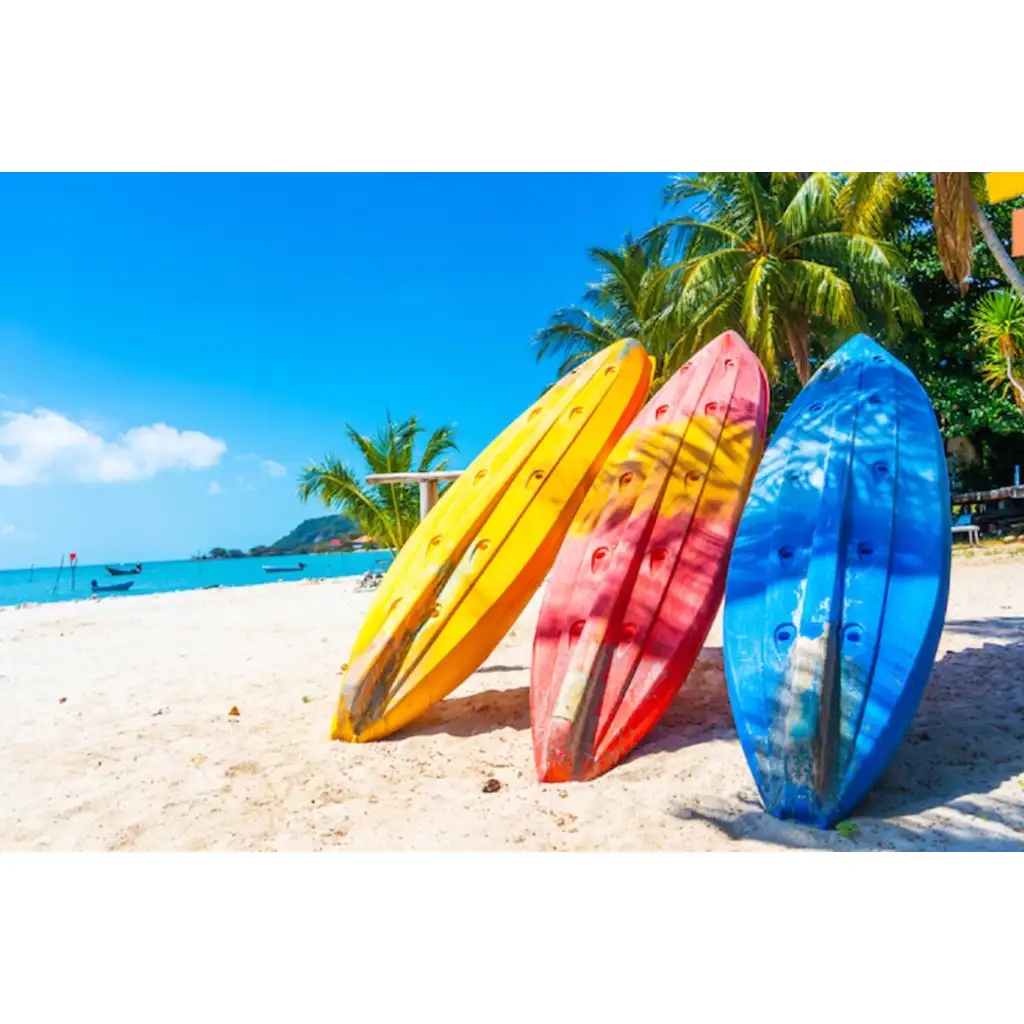 Preneste si domov letnú prímorskú atmosféru s mozaikou so surfovacími doskami z diamantov! Táto diamantová maľba s rozmermi 40x50 cm zobrazuje slnečný plážový výjav, kde tri žiarivo farebné surfovacie dosky – žltá, červená a modrá – čakajú na vlny v tieni paliem. Každý detail obrazu pripomína letnú pohodu a bezstarostné chvíle – je to dokonalá voľba, ak chcete priniesť kúsok leta do svojho domova.