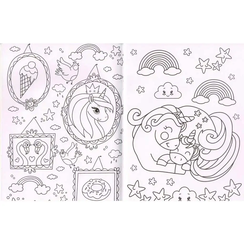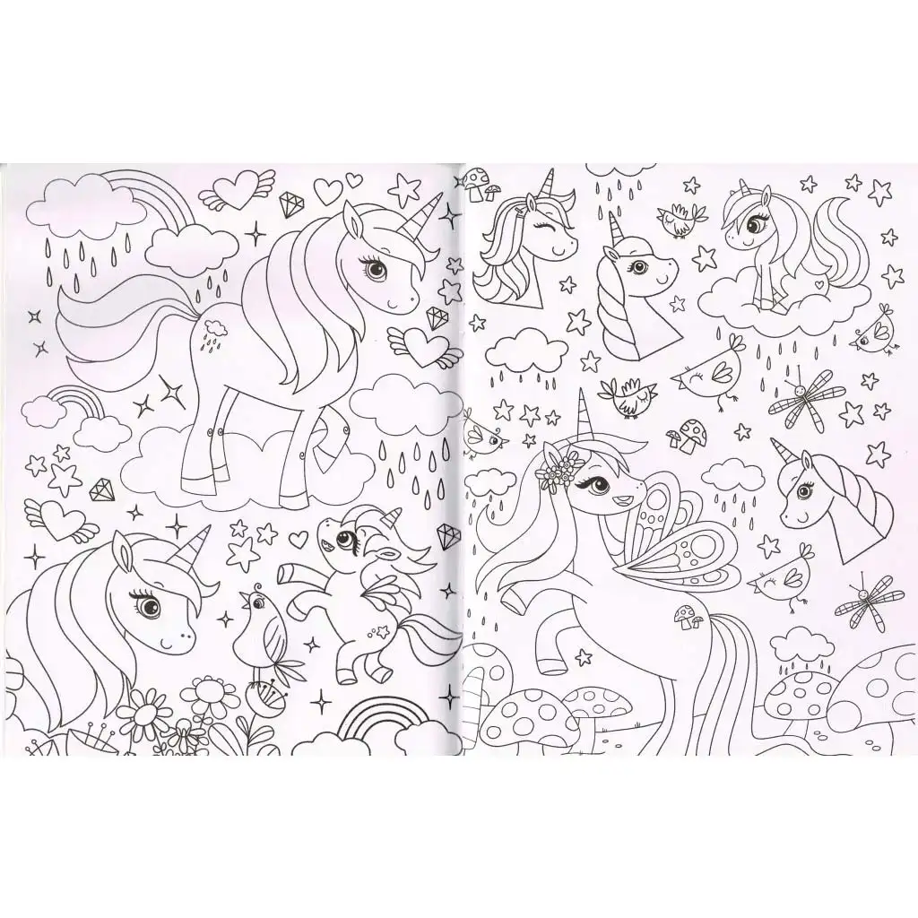 Na stránkach omaľovánky každý jednorožec ukrýva svoj vlastný príbeh – niektorí sa práve hrajú so svojimi kamarátmi medzi oblakmi, iní odpočívajú v pokoji pod dúhou. Deti si môžu voľne vybrať farby, ktoré použijú, a potom svoje výtvory ešte viac rozžiariť priloženými diamantovými samolepkami. Ružová trblietavá hriva? Alebo čarovná krajina, kde každý strom žiari dúhovými farbami? V tejto knihe je všetko možné!