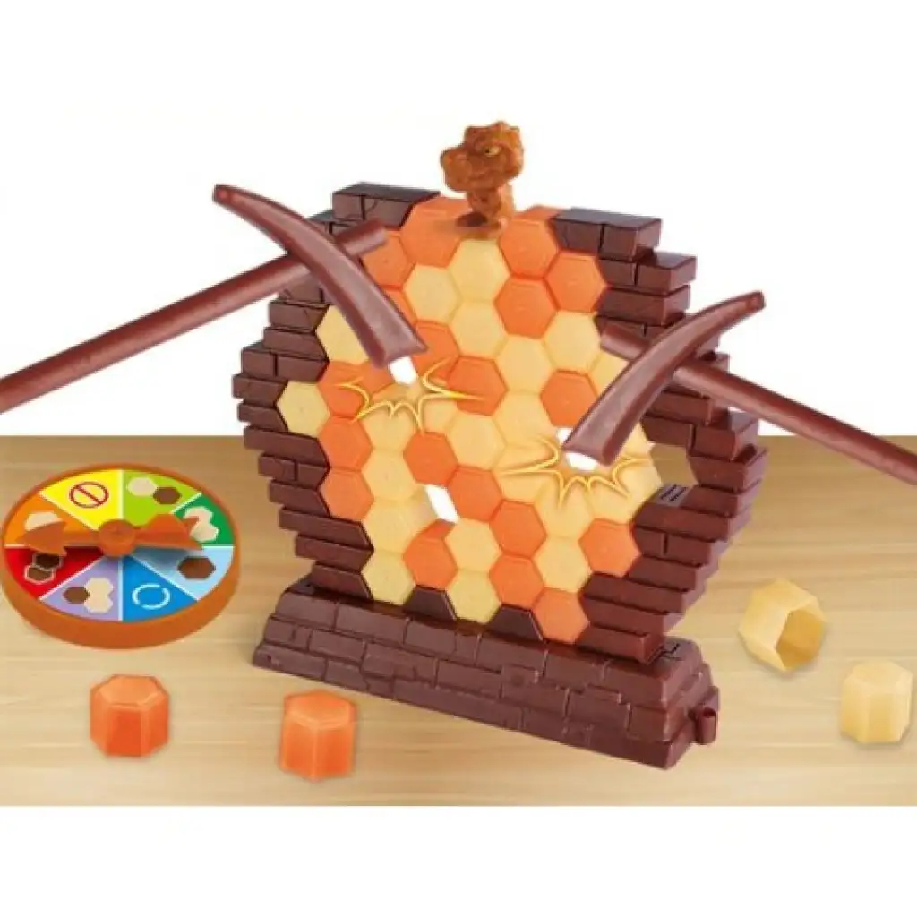 Dino Escape je naozaj zábavná zručnostná spoločenská hra, v ktorej je cieľom oslobodiť malého dinosaura nachádzajúceho sa na vrchole steny. V hre nie sú kocky, ale točítko, ktoré nám ukáže, aký drevený prvok musíme vyraziť naším malým kladivkom. Jednoducho hrateľná hra je perfektnou voľbou aj pre menšie deti, pretože poskytne skvelú zábavu celej rodine.