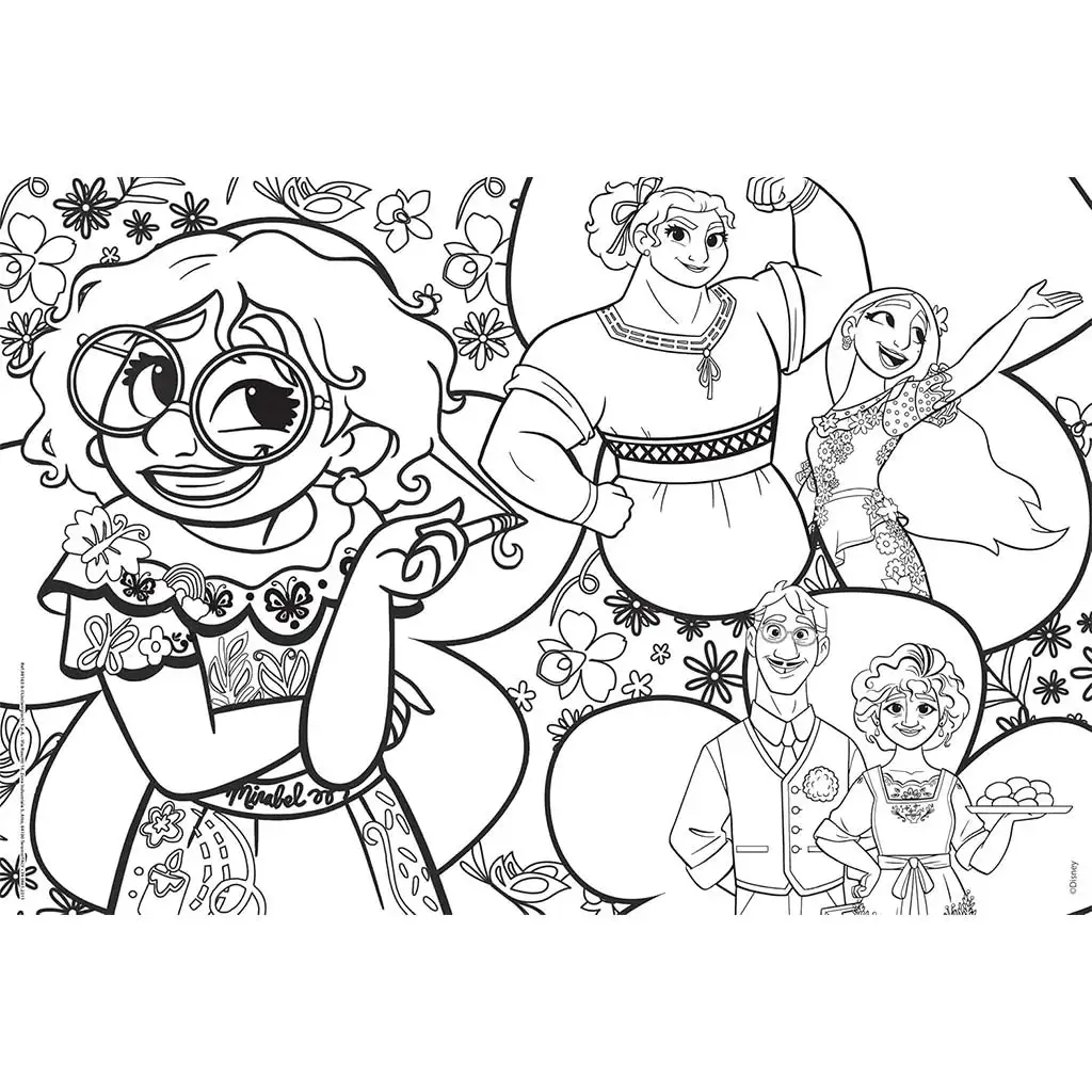 Ponorte sa do čarovného sveta Encanta s touto farebnou a kreatívnou 2 v 1 puzzle a omaľovánkovou súpravou! Disney Encanto maxi podlahové puzzle so 60 dielikmi prinášajú deťom nielen vzrušenie z skladania, ale aj radosť z vyfarbovania. Obe puzzle sú obojstranné: na jednej strane sú farebné scény z dobrodružstiev Mirabel a rodiny Madrigal, zatiaľ čo na druhej strane sa tie isté obrázky objavujú v čiernobielej verzii a slúžia ako omaľovánka.