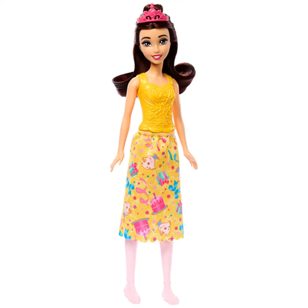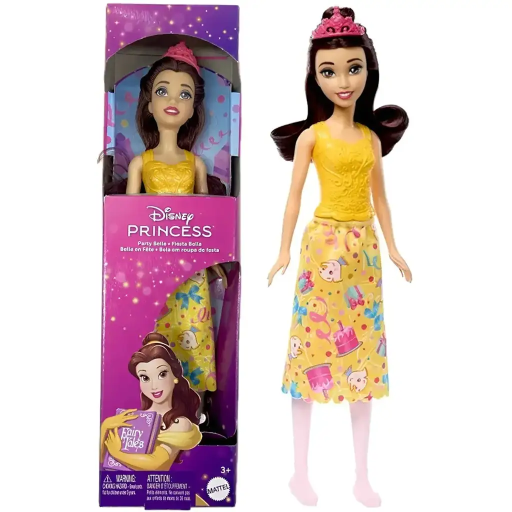 Belle žiari v ikonickom zlatom tope, ku ktorému patrí živá, vzorovaná sukňa. Na odnímateľnej sukni sú rozkošné detaily, ako Čajník (Chip), pani Pottsová, slávnostné torty, darčekové krabice a konfety – jednoducho všetko, čo treba na pravú Disney párty! Bábika má na hlave ružovú tiaru a jej dlhé hnedé vlasy sa dajú ľahko česať, takže si ich deti môžu upravovať podľa vlastnej fantázie.