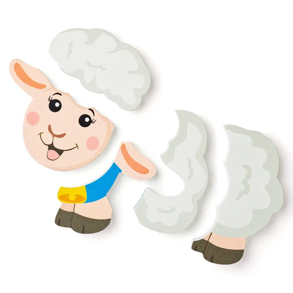 Úsmev ovečky a priateľské, farebné pozadie robia túto hračku veľmi atraktívnou pre deti. Puzzle z piatich samostatných dielikov pomáha deťom zoznámiť sa so základmi tvarov a skladania, pričom rozvíja koordináciu oko-ruka a schopnosť sústredenia.