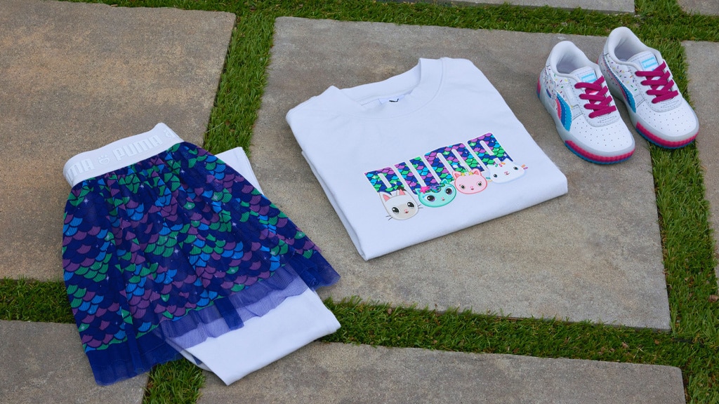Pre deti, ktoré si nevedia vybrať obľúbenú postavu, PUMA sa o ne postará (v mäkkom, svetrovom materiáli). Jedna z PUMA x Gabi bábikových domčekov, dvojdielna súprava, obsahuje obrázky MerCat a jej priateľov a vzor pokrytý šupinami. Súprava obsahuje sukňu a legíny, ktoré predstavujú podobný šupinový vzor.