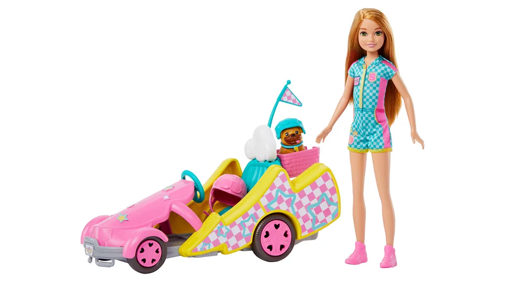 Deti môžu vstúpiť na dráhu s touto bábikou Stacie a jej gokartom. Stacie je pripravená na rýchlosť vo svojom závodnom oblečení a so svojím psíkom ako spoločníkom. Súprava hračiek obsahuje bábiku, psíka, gokart, pripojiteľnú vlajku, pripojiteľný košík, balíček nálepiek a tri doplnky.