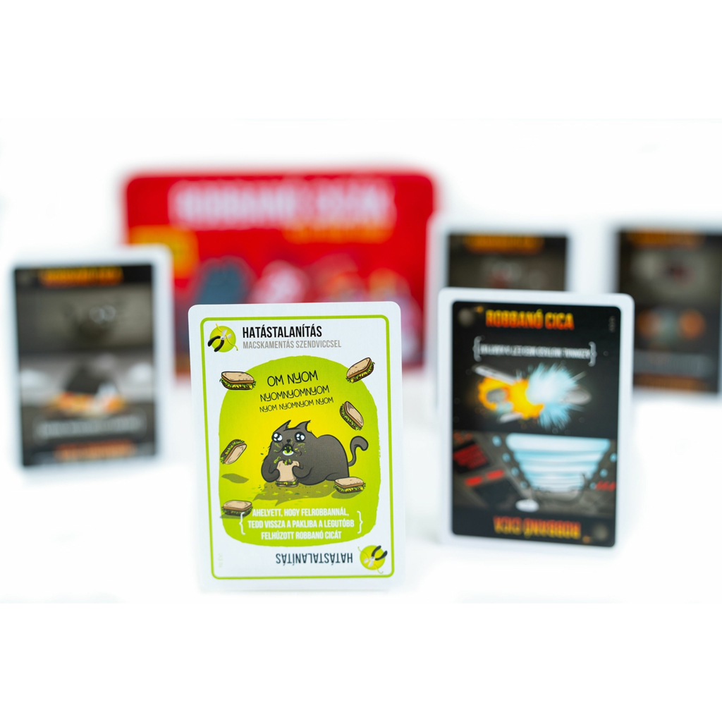 Cieľ hry je jednoduchý: ťahaj karty, vyhni sa explodujúcej mačke a snaž sa prekabátiť ostatných pomocou rôznych akčných kariet. Humorné ilustrácie a absurdné situácie zaručujú množstvo smiechu, zatiaľ čo deti nepostrehnuteľne rozvíjajú svoje strategické myslenie a schopnosť rozhodovať sa. Vďaka krátkej dĺžke hry ju môžete vytiahnuť kedykoľvek, či už ide o rýchlu párty hru alebo dlhší rodinný večer.
