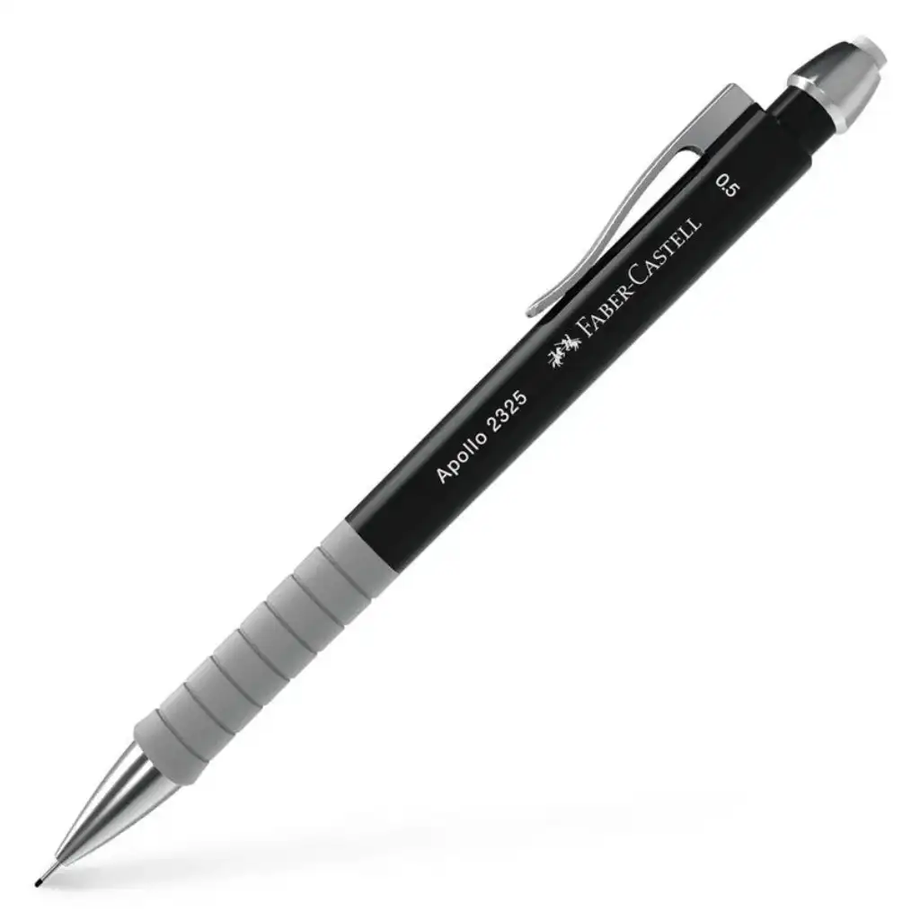 Mechanická ceruzka Faber-Castell Apolló 2325 s hrúbkou 0,5 mm je perfektnou voľbou pre tých, ktorí hľadajú kvalitný, pohodlný a spoľahlivý písací nástroj na každodenné použitie – či už ide o školské poznámky, kancelársku prácu alebo technické kreslenie. Elegantný čierny dizajn, strieborný klip a precízne riešené detaily jej dodávajú moderný vzhľad, pričom zároveň zaručujú vysokú kvalitu typickú pre značku Faber-Castell.