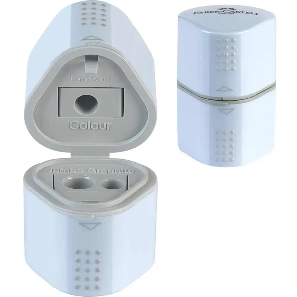 Zoznámte sa s ostričkou Faber-Castell Grip 2001 Trio, ktorá bude praktickým a štýlovým doplnkom písacích potrieb vášho dieťaťa. Táto ostrička v nebesky modrej farbe má tri rôzne veľkosti otvorov: jeden pre štandardné veľkosti ceruziek, jeden pre tenšie grafitové ceruzky a jeden pre hrubšie, jumbo veľkosti. Zóna "Grip" na vrchu ostričky zabezpečuje používanie bez šmyku, zatiaľ čo zásobník zachytáva triesky, čím udržiava pracovný stôl čistý. Priložené viečko zabraňuje rozptyľovaniu triesok. Vysokokvalitné nehrdzavejúce oceľové čepele zabezpečujú hladké a rovnomerné ostrihanie pri každom použití.