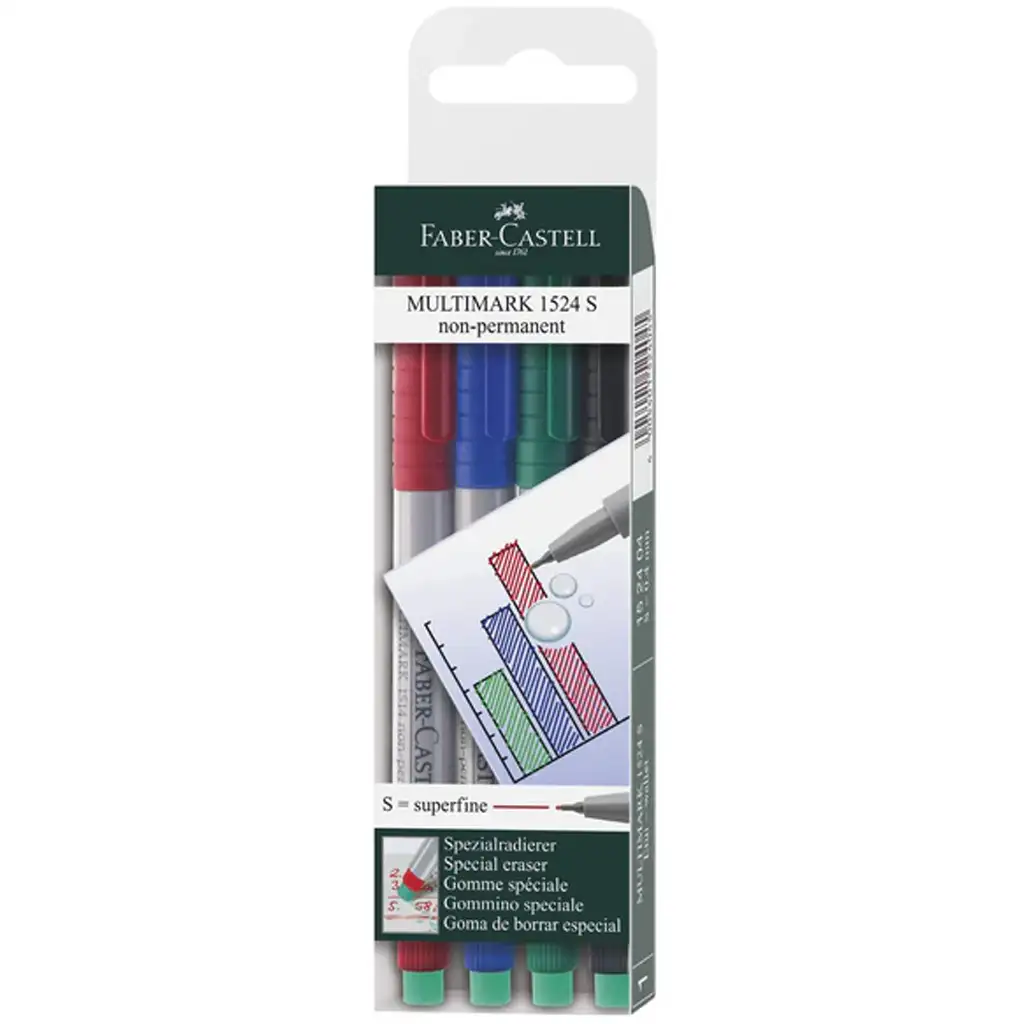 Sada fóliových pier Faber-Castell Multimark s tenkým (superfine) hrotom je perfektnou voľbou, ak potrebujete mimoriadne tenké a presné čiary na fóliách, skle, kovoch alebo iných hladkých povrchoch. Štvordielna sada obsahuje červenú, modrú, zelenú a čiernu farbu, takže je všestranne použiteľná na školské, kancelárske aj kreatívne účely. Vode rozpustný, nepermanentný atrament sa dá jednoducho zotrieť vlhkou handričkou, takže je ideálny na dočasné poznámky alebo na použitie na opakovane použiteľných povrchoch.