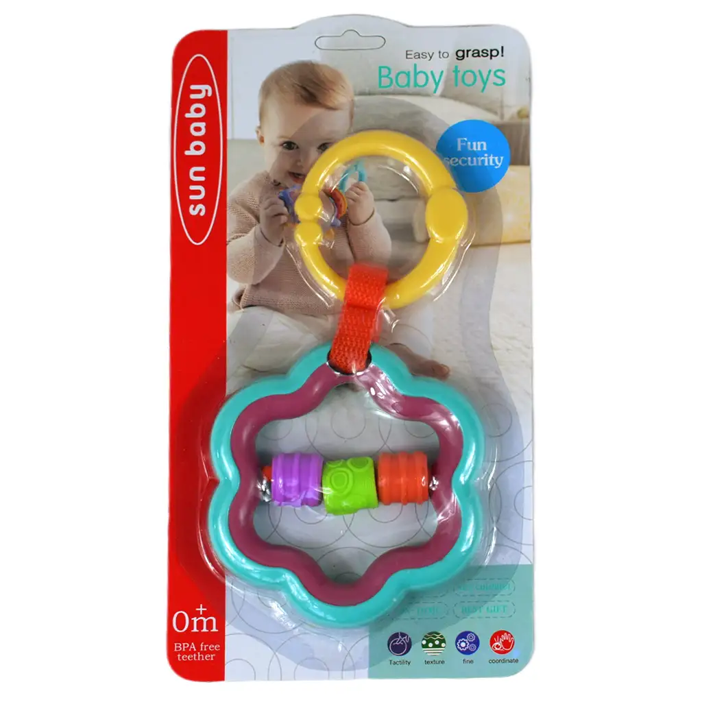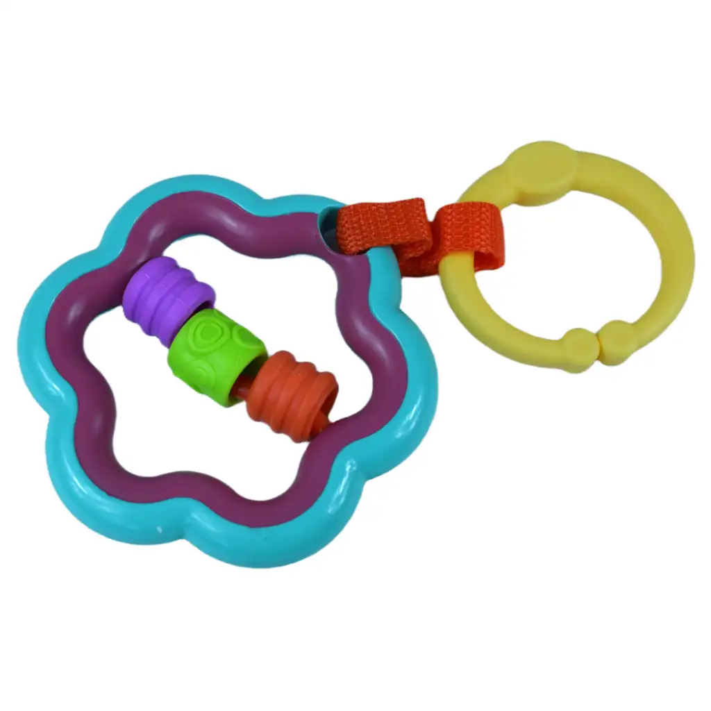 Tento farebný hryzátko a chrastítko môže byť ideálnym darčekom pre najmenších, s prihliadnutím na prirodzenú tendenciu dojčiat vkladať si všetko do úst. Hračka nielenže zabáva a svojím atraktívnym dizajnom očarí deti, ale vďaka praktickému závesu ju možno ľahko zavesiť kamkoľvek, takže je vždy po ruke pre malých hráčov.