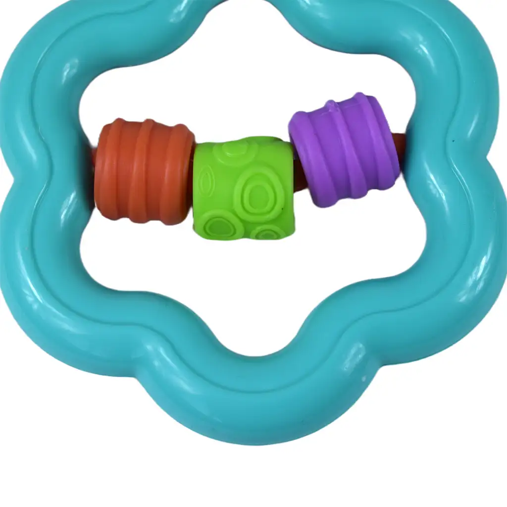 Farebné prevedenie hryzátka nielenže je estetické, ale tiež pomáha zaujať pozornosť detí. Masívne hryzátko je ideálne na to, aby si ho deti mohli dôkladne okusať, zatiaľ čo funkcia chrastítka poskytuje ďalšiu zábavu a zážitok. Dizajn hračky zohľadňuje citlivosť ústnej dutiny dieťaťa, takže ju jemne masíruje a prispieva k prirodzenému procesu rastu zubov.