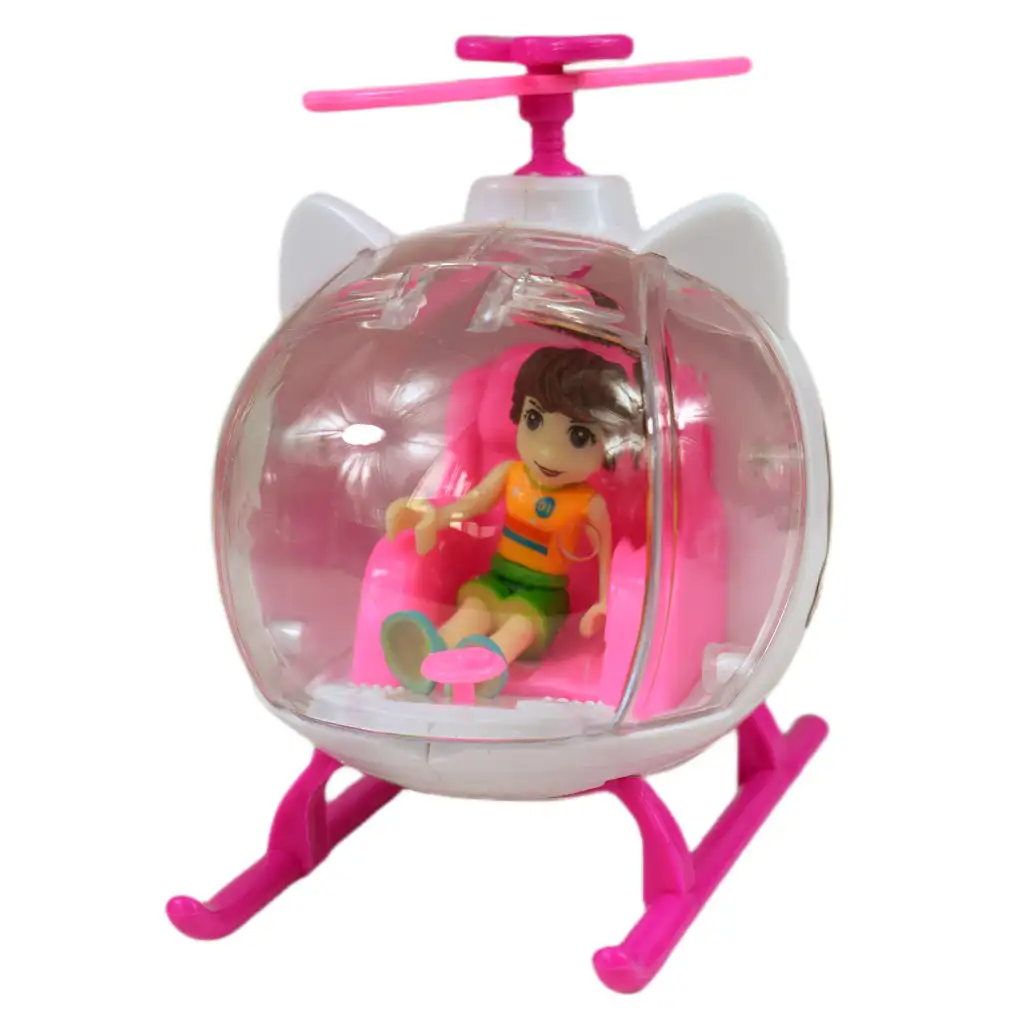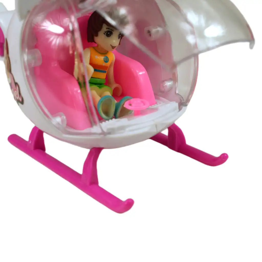 Sada tiež obsahuje úchvatný vrtuľník, ktorý tiež žiari v ružovej farbe. S týmto vrtuľníkom a priloženými doplnkami môžu spolu prežiť úžasné dobrodružstvá. Stôl a príslušné stoličky umožňujú organizovať hry a usporiadať automobilové preteky, zatiaľ čo dve herné postavičky oživujú príbehy a umožňujú vytvárať bohaté a kreatívne hry.