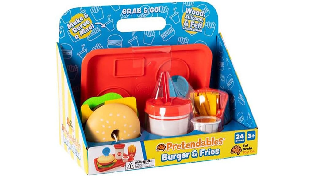 Spoločnosť Fat Brain Toys rozšírila menu Pretendables o hamburgery a hranolky! S touto 24-dielnou súpravou môžu deti zahrať úlohu skutočného jedla a pripraviť si lahodne zábavný hamburger. Súprava obsahuje všetky potrebné prvky, aby deti mohli kreatívne a zábavne tráviť čas, pričom rozvíjajú svoju predstavivosť a sociálne zručnosti. Počas hry sa deti naučia základy prípravy jedla a užijú si radosť zo spoločnej hry s priateľmi alebo rodinnými príslušníkmi.