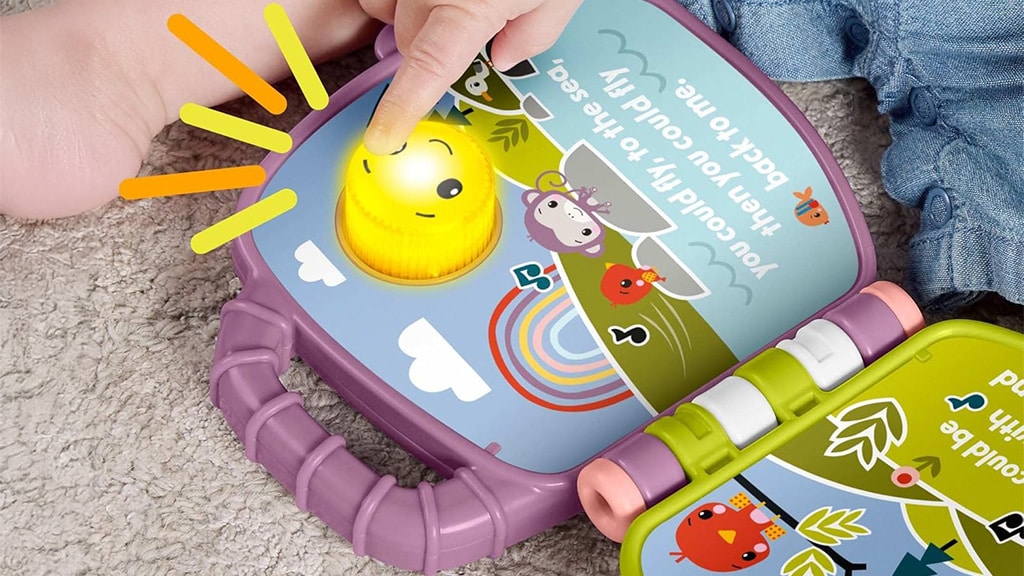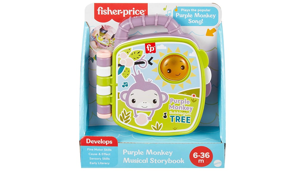 Táto hudobná kniha s hračkami prehráva pieseň Fialová opica, ktorá je známa z Fisher-Price Deluxe Kick & Play Piano Gym. Stlačením tlačidla usmievajúceho sa slnka na obale sa spustí hudba a svetelná hra. Pri každom otočení strany zaznejú nové melódie a zvuky, ktoré sú jedinečné pre danú stranu. Táto kniha nielen zabáva, ale aj rozvíja zmysly a schopnosti dieťaťa, pričom hravou formou zoznamuje s hudbou a svetom zvukov.