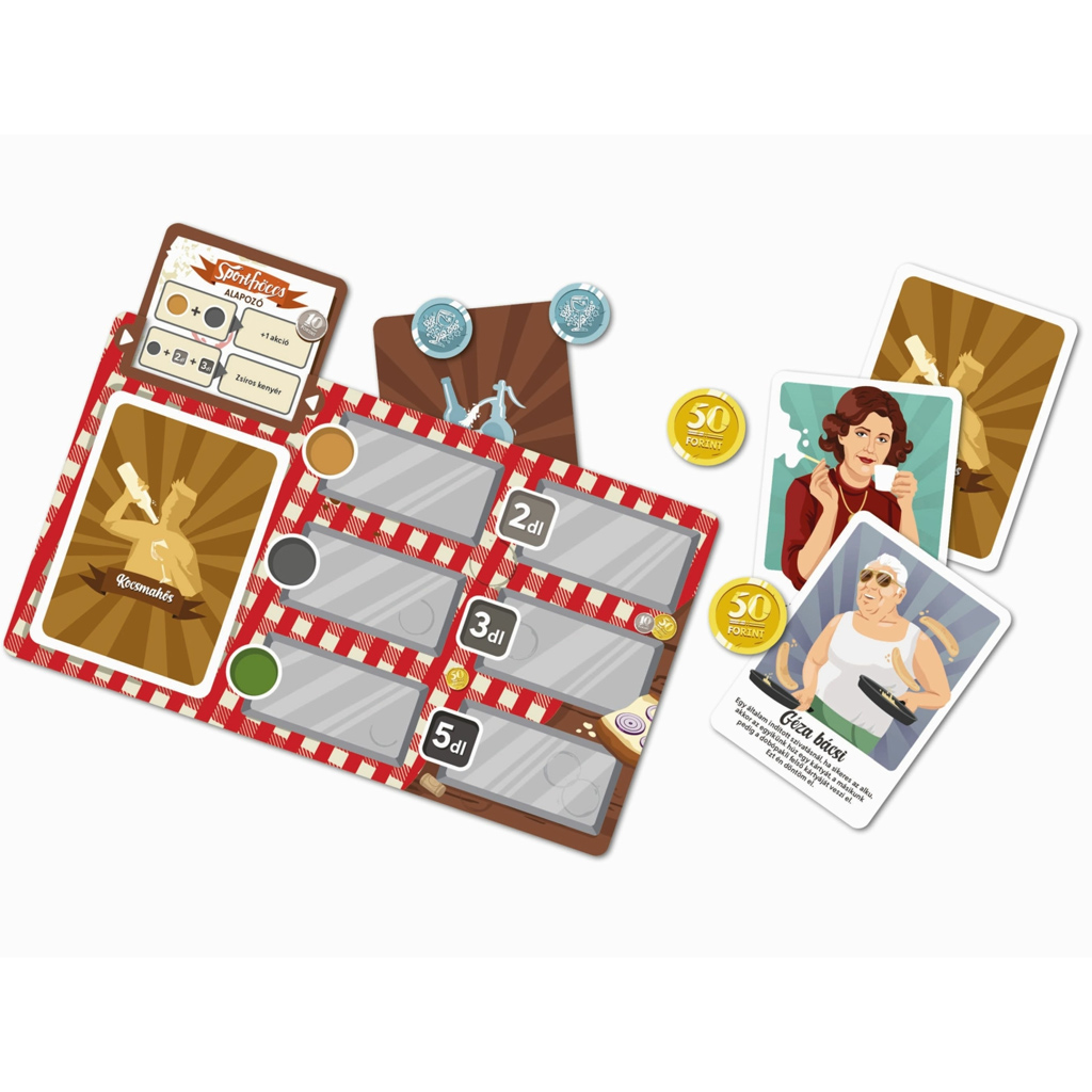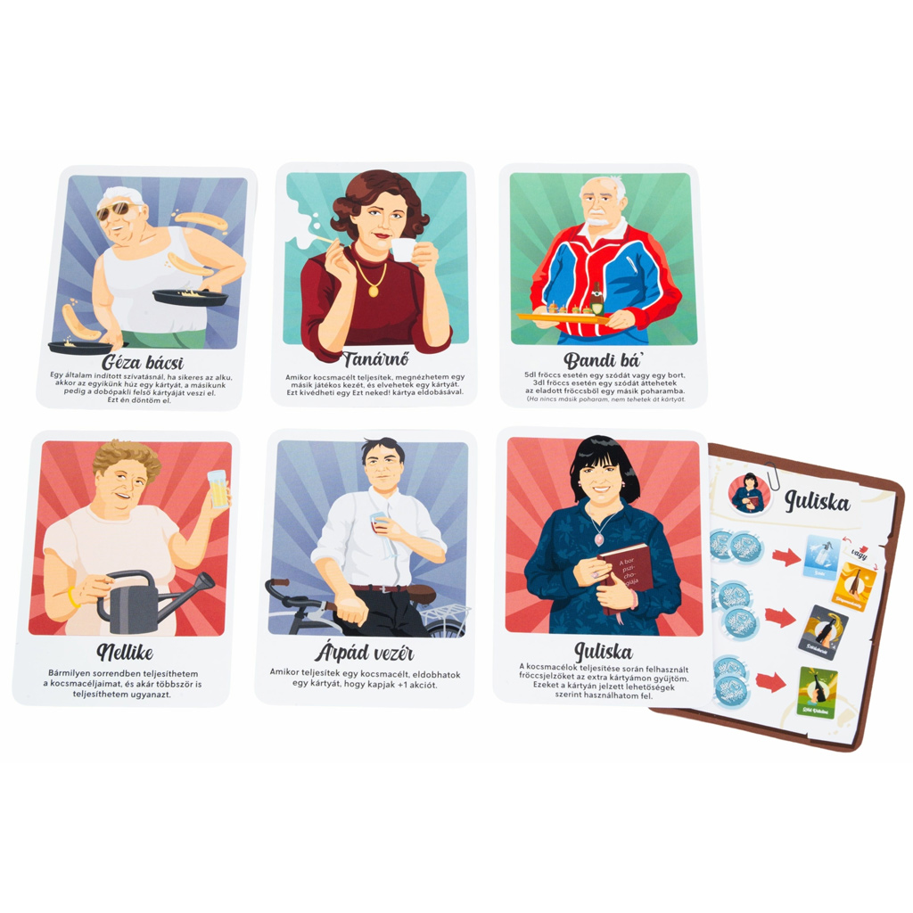 Veselá, štýlová grafika a humorné postavy vás okamžite vtiahnu, pričom počas hry musíte šikovne hospodáriť s kartami a svojimi možnosťami. Rozšírenie otvára nové stratégie, takže deti aj dospelí si užijú spoločné hranie. Skvelá voľba, ak chcete oživiť existujúcu hru Fröccs a spolu zažiť ešte viac chvíľ plných smiechu.