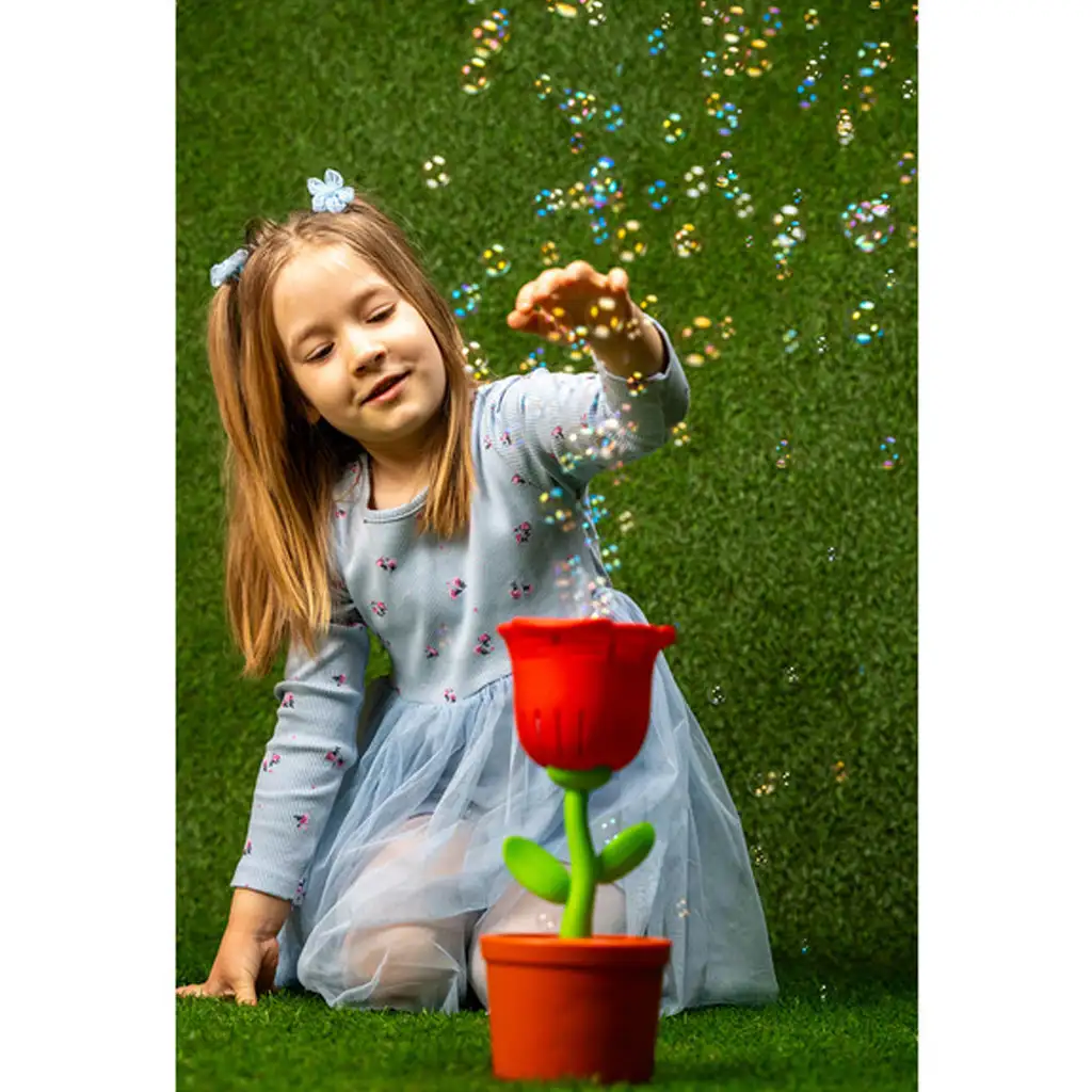 Očarujte herný čas detí s týmto špeciálnym bublifukom! FruBlu Bublinková mágia Ruža nie je len bublifukový stroj – je to skutočný zážitok. Má tvar krásnej červenej ruže, ktorá premení herný čas na skutočné rozprávkové dobrodružstvo. Keď ho zapnete, okamžite začne vypúšťať bubliny.
