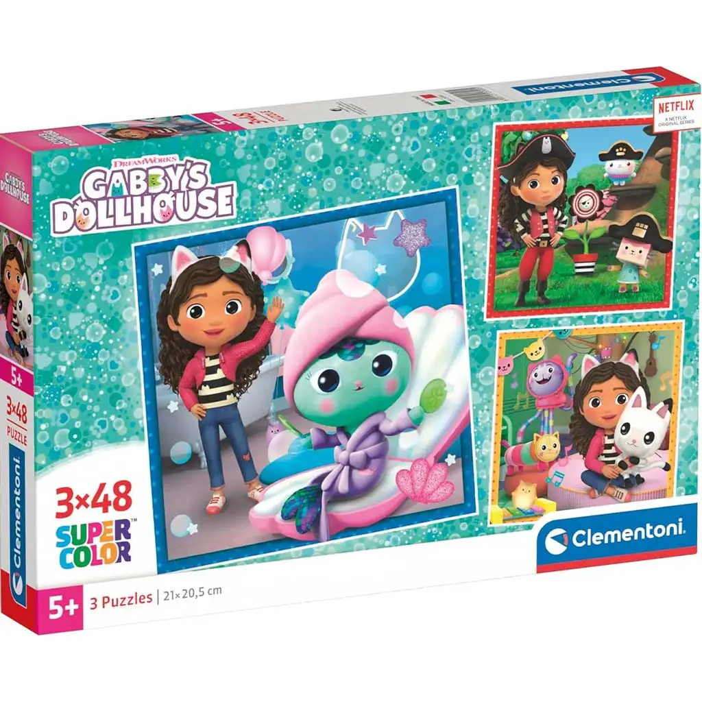 Gabiho bábikový dom: Gabiho aktivity 3x48 dielikové Supercolor puzzle - Clementoni