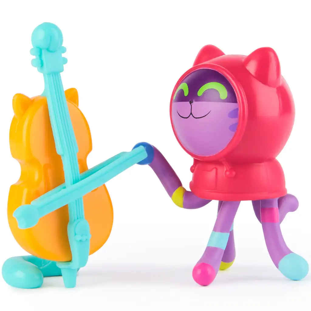 Figúrka DJ Cirmos prichádza s pôvabným, detailným spracovaním a charakteristickou červenou kapucňou, ktorá jej dodáva jedinečný štýl. Violončelo v tvare mačky žiari v žiarivých oranžových a tyrkysových farbách, ktoré nielen evokujú atmosféru seriálu, ale sú aj skutočne pútavé. Veľkosť figúrky a nástroja je dokonale prispôsobená malým rukám, takže deti sa s nimi môžu ľahko hrať a rozvíjať svoju kreativitu a hudobnú fantáziu.