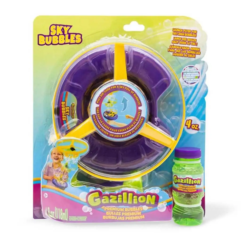 Spoznajte Gazillion Sky Bubbles Lietajúci Bublinkový Bubikoptér, ktorý ponúka jedinečnú zábavu vo svete bubliniek plávajúcich vo vzduchu! Táto fantastická hračka je skutočný lietajúci bublinkovač, ktorý umožňuje deťom fúkať takmer nekonečné množstvo bubliniek.