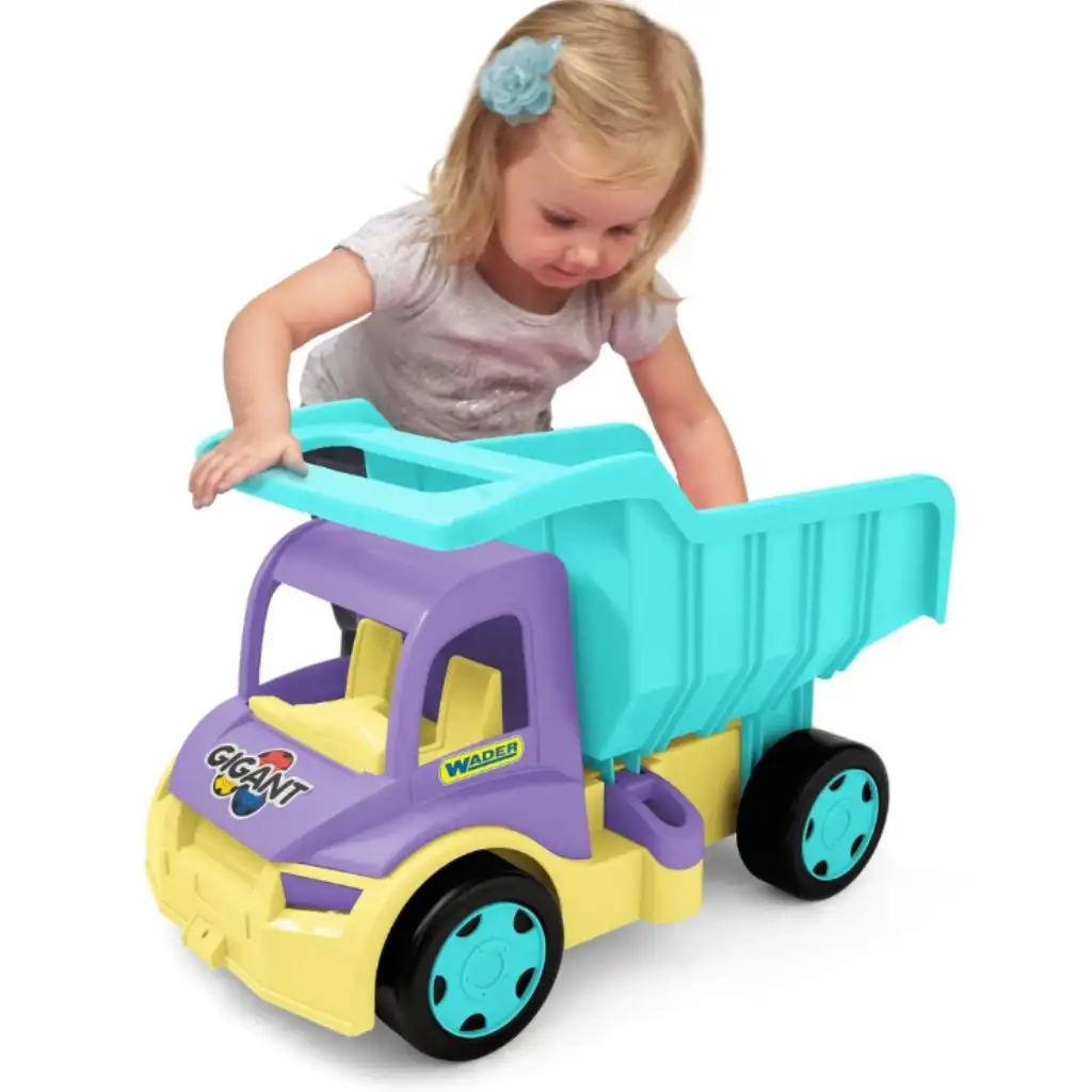 Wader Gigant obrovský sklápač v fialovo-tyrkysovej farbe sa zaručene stane obľúbencom vášho dieťaťa! Toto odvážne a zároveň veselé vozidlo je nielen odolné, ale vďaka nosnosti až 150 kg je aj mimoriadne silné. Vďaka sklopnej korbe môže vaše dieťa ľahko nakladať a vykladať náklad pri hraní v pieskovisku alebo dokonca doma. Veľkosť 55 cm je ideálna na to, aby vaše dieťa mohlo pohodlne tlačiť, zatiaľ čo sa rozvíjajú jeho zručnosti a fantázia. Obdarujte svoje dieťa týmto výnimočným sklápačom!