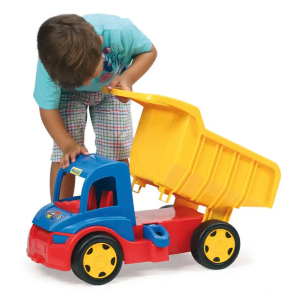 S Wader Gigant obrovským sklápačom môže vaše dieťa zažiť skutočné stavebné dobrodružstvá! Tento masívny, odolný, farebný sklápač je ideálnou voľbou do pieskoviska, záhrady alebo dokonca na vnútorné hry. Vďaka nosnosti až 150 kg zvládne aj najnáročnejší terén, pričom jeho sklopná korba umožňuje ľahké prepravenie nákladu. Veľkosť 55 cm je ideálna pre malé ruky a zaručene rozvíja motorické schopnosti, fantáziu a kreativitu vášho dieťaťa.