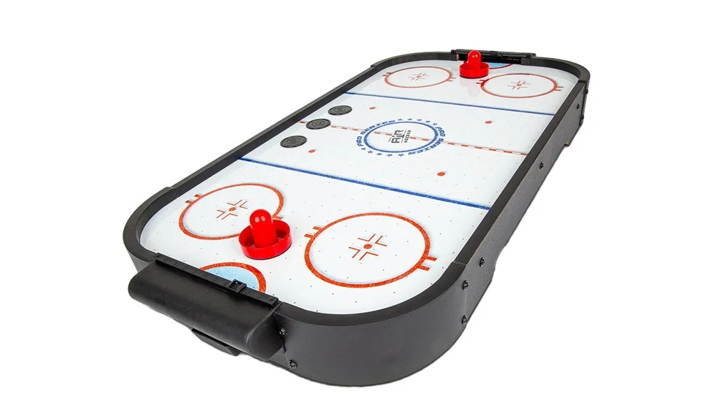 Deti môžu vziať so sebou vzrušenie a zábavu air hockey s týmto prenosným stolovým hrou kdekoľvek. 30-palcový stôl sa zmestí takmer na akýkoľvek písací stôl alebo stôl a je perfektný pre hru kedykoľvek a kdekoľvek. Hra obsahuje vopred nainštalovaný ventilátor, ktorý poskytuje silný prúd vzduchu pre hladký priebeh hry.