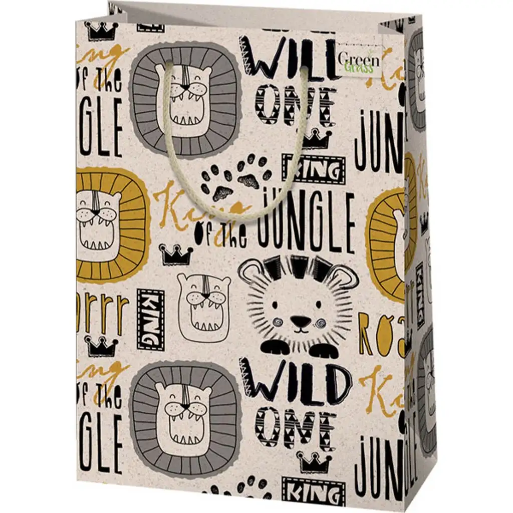 Green Grass Leví vzor veľká prémiová darčeková taška 26x14x33cmGreen Grass Leví vzor veľká prémiová darčeková taška 26x14x33cm