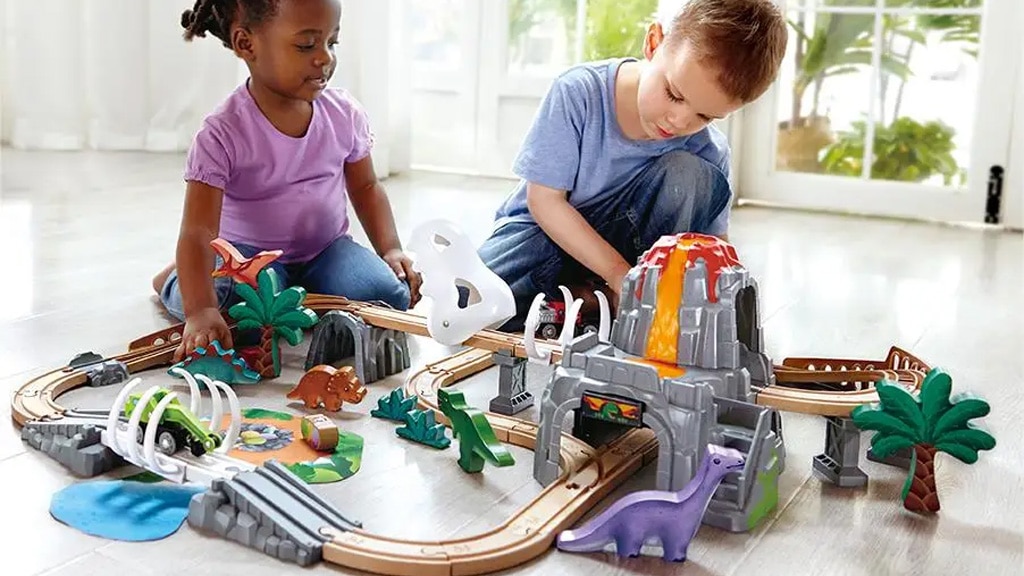 Hape Dino Kaland Železničná súprava obsahuje 23 bukových koľajníc, figúrky dinosaurov a všetky potrebné doplnky pre konečnú jurskú vlakovú cestu. Deti môžu postaviť veľkú trať a viesť drevený vlak cez sopku, dinosaurie rebrá, lebku dinosaura a mnoho ďalších prekážok. Malí môžu umiestniť dinosaury, žeriavy, stromy, kryštály a mnoho ďalších prvkov okolo súpravy, aby vytvorili skutočne pútavý zážitok. Táto hra nie je len zábavná, ale rozvíja aj kreativitu a zručnosť detí, zatiaľ čo sa zoznamujú so svetom dinosaurov. Súprava dáva deťom možnosť vymýšľať vlastné príbehy a ponoriť sa do jurských dobrodružstiev, zatiaľ čo kombinujú a znovu vytvárajú trať s rôznymi prvkami. Počas hry sa deti môžu naučiť aj tímovú prácu, ak spoločne stavajú trať a delia si úlohy. Táto železničná súprava je perfektnou voľbou pre každého malého objaviteľa, ktorý miluje dinosaury a vlaky.