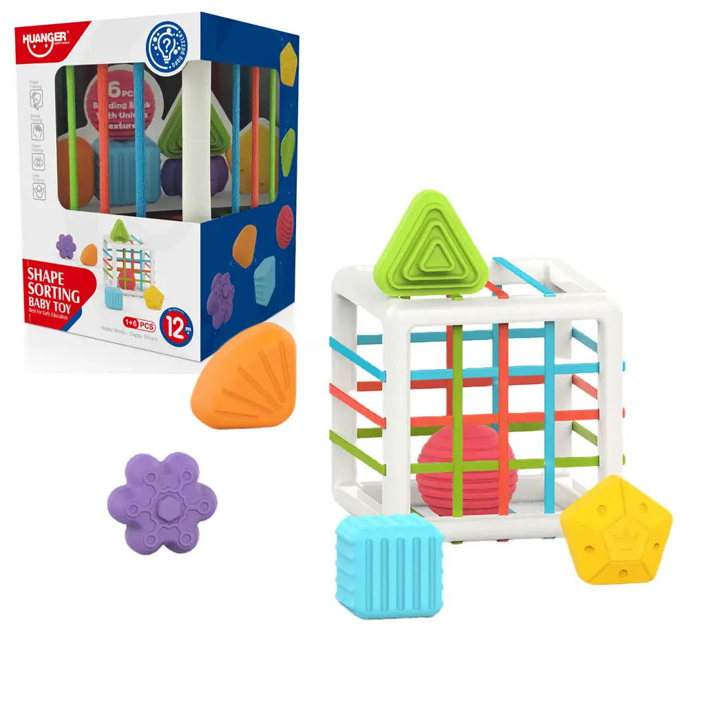 K hre patria rôzne tvary, ktoré sa líšia nielen farbou, ale aj hmatom. Úlohou je dostať tieto tvary dovnútra kocky cez správne otvory. To nielen rozvíja zručnosť a jemnú motoriku, ale tiež pomáha pri rozpoznávaní farieb a tvarov.