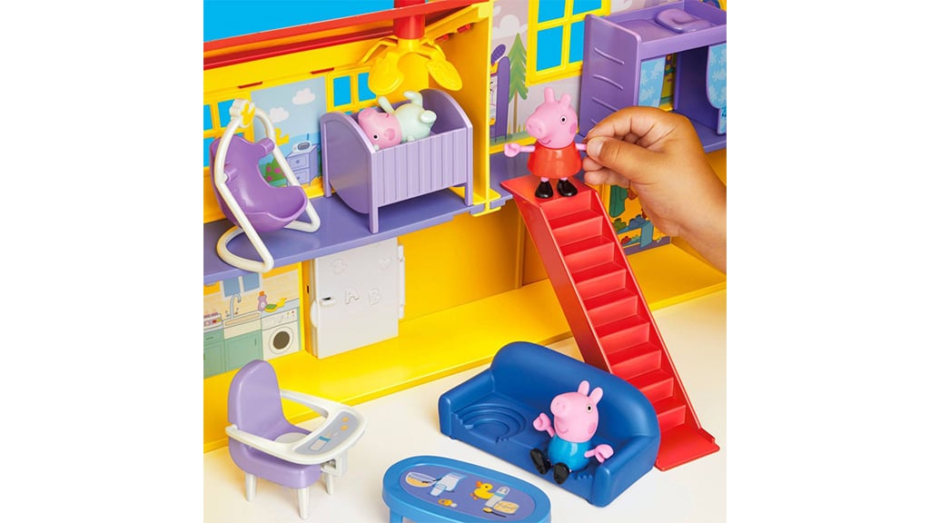 Deti si môžu vytvoriť a znovu prežiť svoje obľúbené príbehy Peppa Pig s celou rodinou, vrátane najnovšieho člena, Evie. Tento 16-dielny domček vyzerá presne ako v seriáli a obsahuje všetky dôležité miestnosti: kúpeľňu, obývačku, kuchyňu s otvárateľnou chladničkou a garáž s otvárateľnými dverami. Súprava obsahuje aj figúrky, takže deti môžu ešte realistickejšie zahrať scény z rozprávok. Táto hračka nielen rozvíja predstavivosť, ale aj spríjemňuje spoločné rodinné chvíle, pričom najmenší môžu objavovať svet Peppy a vytvárať si vlastné príbehy.