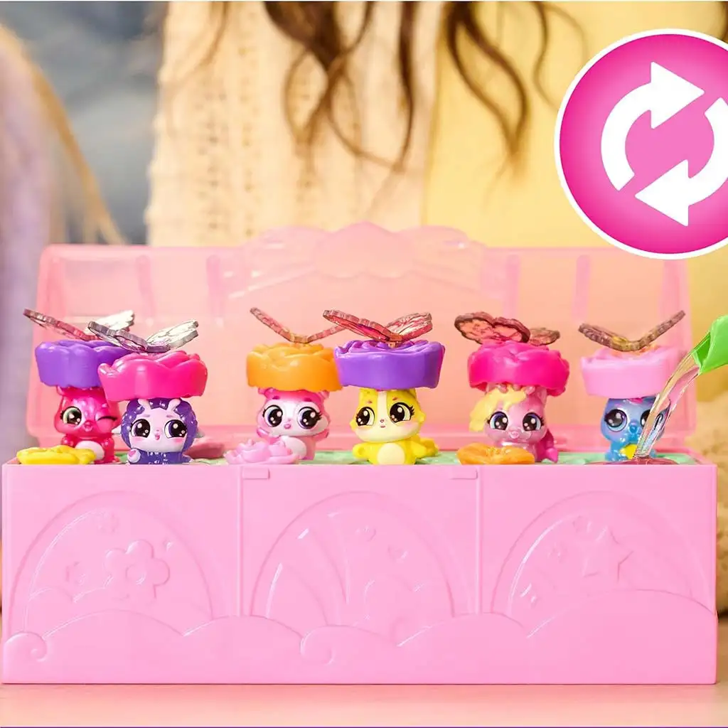 Bloom Bash multibalíček prichádza v praktickej ružovej úložnej krabičke, ktorá sa po otvorení premení na kompletné herné ihrisko. Balíček obsahuje 6 figúrok Bloomables, z ktorých každá má jedinečné farby, výrazy tváre a detaily. Deti môžu figúrky otáčať, vymieňať a usporadúvať, zatiaľ čo si vymýšľajú vlastné príbehy vo svete kvetinových Hatchimals. Dekoratívne prvky krabičky – kvety, doplnky a malé detaily – ešte viac rozvíjajú kreatívny herný zážitok.
