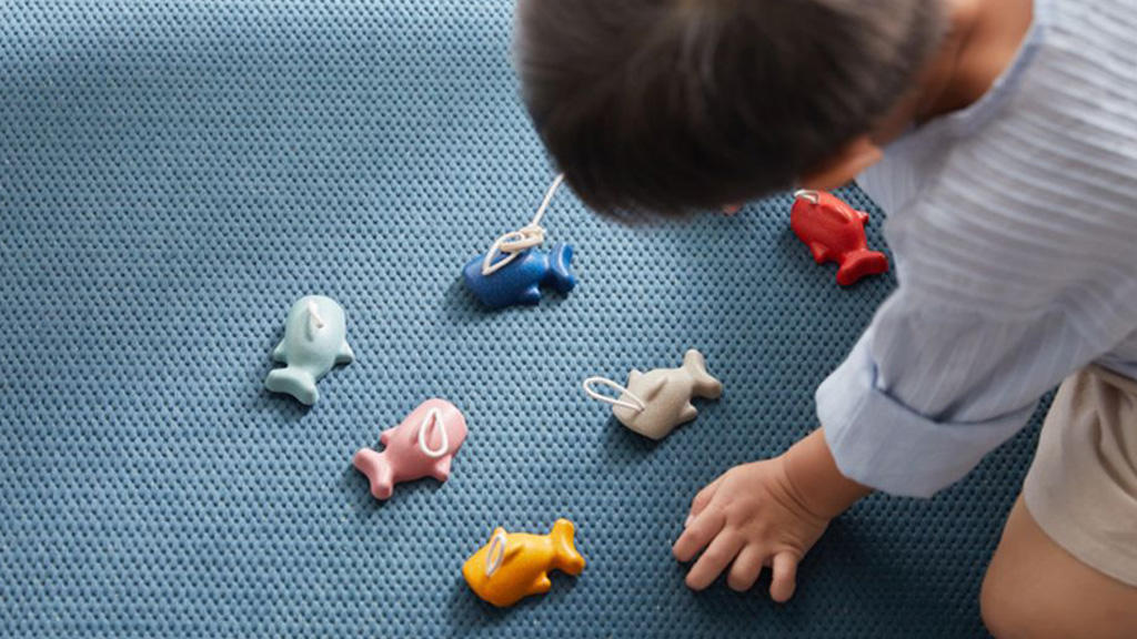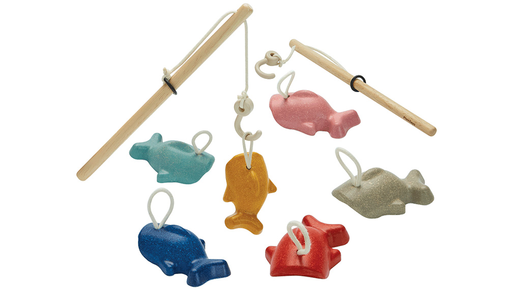 Súprava obsahuje šesť farebných rýb a dva drevené rybárske prúty. Prúty sú nastaviteľné pre rôzne úrovne hry. Táto udržateľná súprava je vynikajúca na rozvoj koordinácie ruka-oko, koncentrácie a jemných motorických zručností.