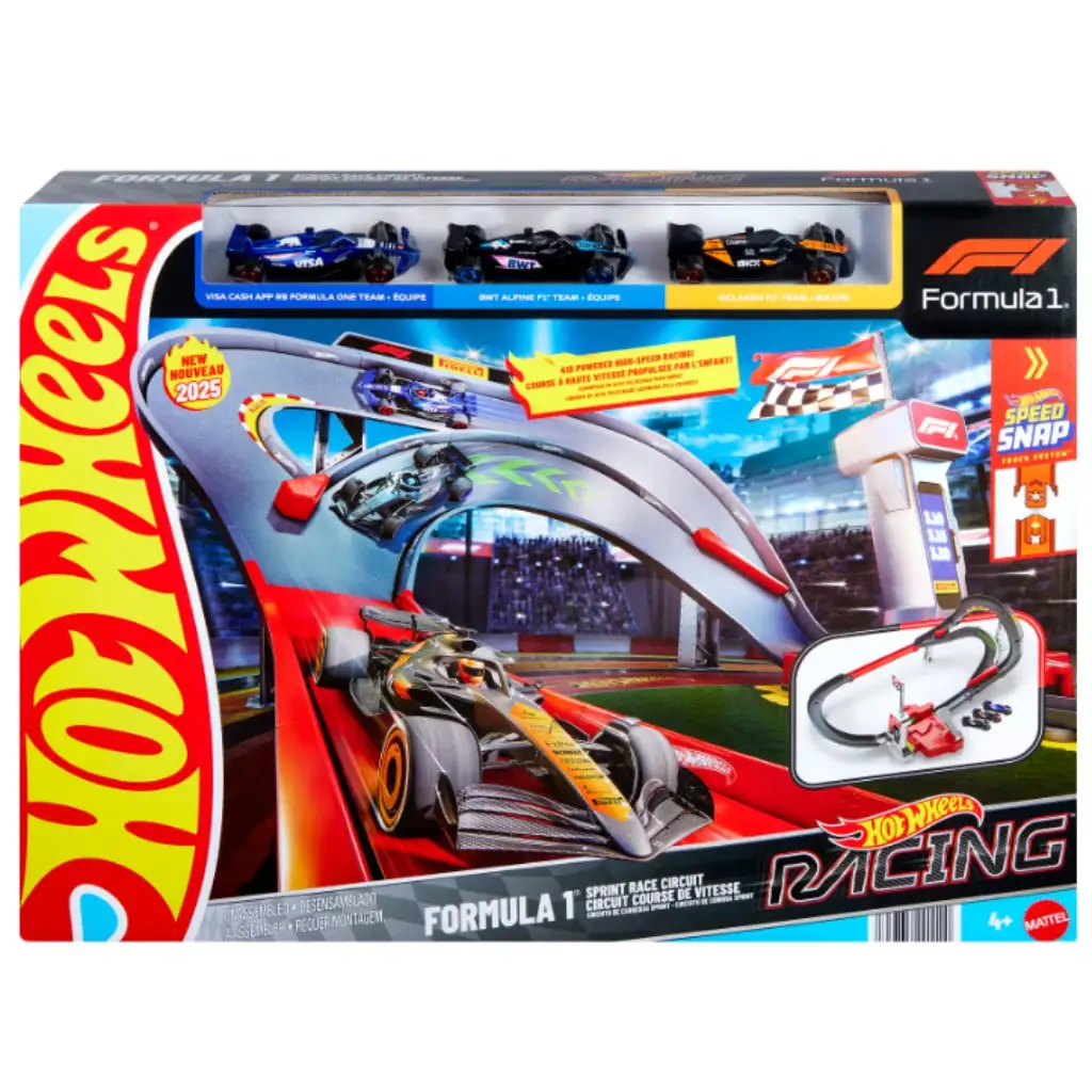 Rýchlosť, vzrušenie a súťaženie teraz prichádzajú priamo do detskej izby s pomocou Hot Wheels: Formula 1 Sprint pretekárskej dráhy! Táto úplne nová Hot Wheels sada je perfektnou voľbou pre deti, ktoré milujú Formulu 1 a rady by sa zapojili do vlastného šampionátu – a to s tromi štýlovými F1 autíčkami, ktoré pripomínajú skutočné tímy.