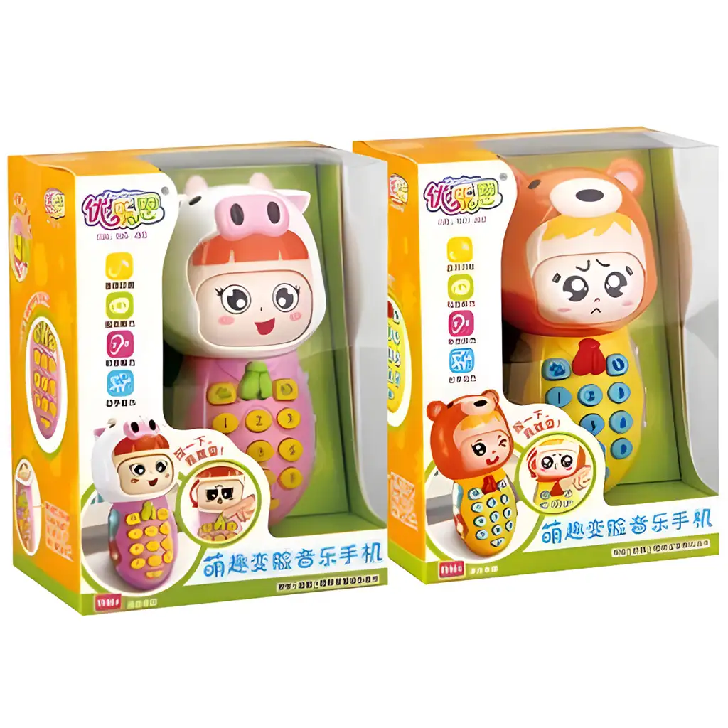 Tento fantastický detský telefón zaručene očarí deti, pretože ponúka množstvo vzrušujúcich funkcií a zvukových efektov. Stlačením červeného tlačidla na krku malého telefónu sa zmení tvár telefónu, môžete prepínať medzi 3 hlavami, takže môžu vyjadriť rôzne nálady. Detský telefón pri stlačení tlačidla vydáva rôzne zvuky, ktoré hru robia ešte zábavnejšou.