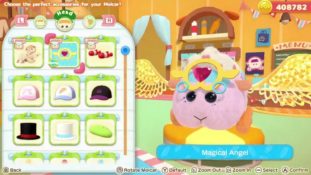 Hráči môžu počas hry fotografovať rôzne momenty a pozrieť si ich vo fotostúdiu. Fanúšikovia Pui Pui Molcar môžu svoje Molcary prispôsobiť viac ako 80 štýlovými doplnkami, vrátane charakteristických doplnkov pre hru.