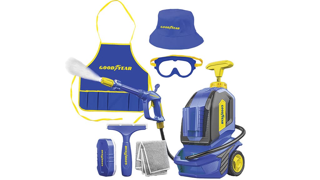 Deti môžu s touto 7-dielnou súpravou na hranie rolí čistiť svoje vlastné autíčka, chodníky a mnoho ďalšieho. Balenie obsahuje čistič s vodným tlakom, ochranné okuliare, ako aj zásteru a čiapku značky Goodyear. Táto súprava nie je len zábavná, ale rozvíja aj kreativitu a jemnú motoriku, pričom deti hravou formou získavajú vedomosti o čistote a zodpovednosti.